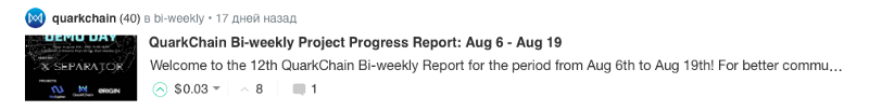 The team QuarkChain shares news on a weekly basis, describing both the progress of the product (first and foremost) and the news regarding external communications, whether it is participation in conferences, publications about the project, or strategic partnerships.